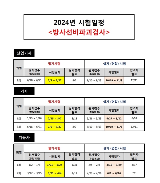 2024 방사선비파괴검사 시험일정 (필기/실기)