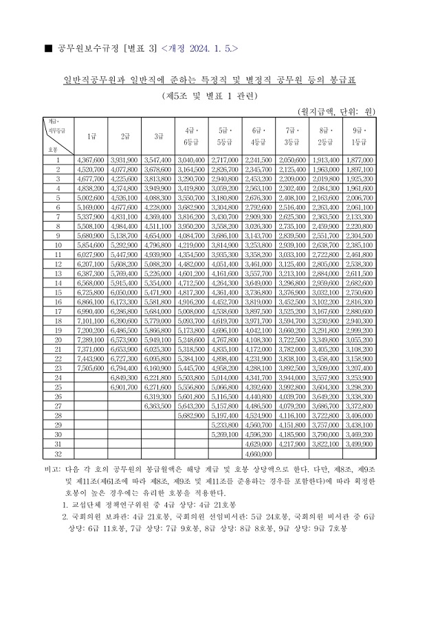 [별표 3] 일반직공무원과 일반직에 준하는 특정직 및 별정직 공무원 등의 봉급표(제5조 및 별표 1 관련)(공무원보수규정).pdf