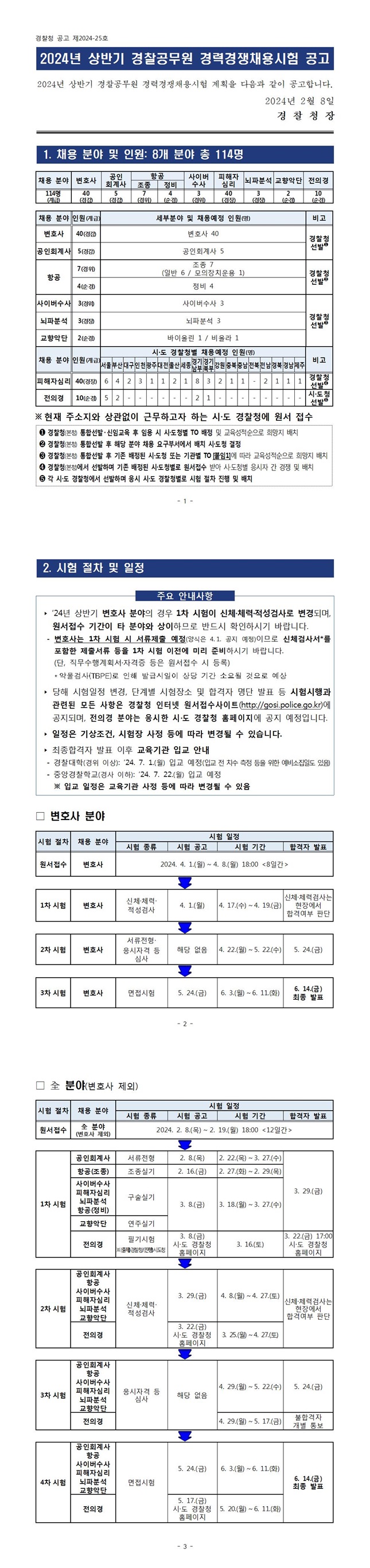 ▶ 2024년 상반기 경찰공무원 경력경쟁채용시험 공고