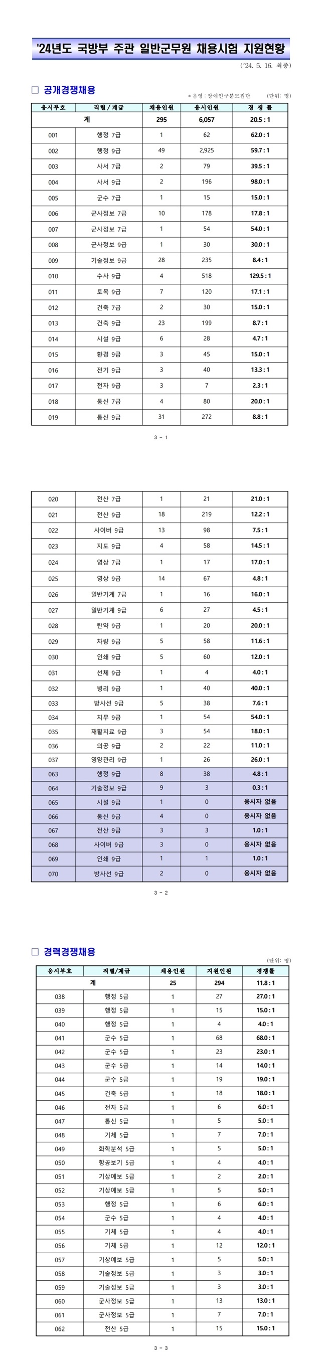 ▶ 2024년 국방부 일반군무원 (공채, 경채) 경쟁률
