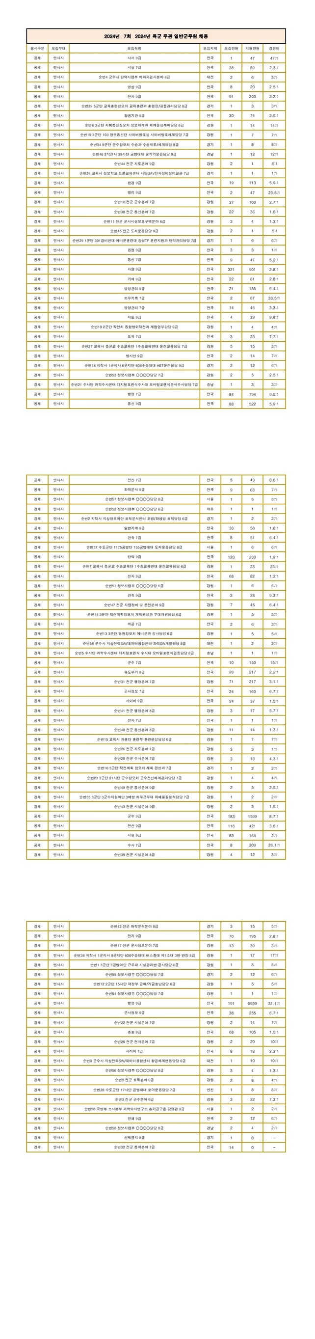 ▶ 2024년 육군 일반군무원 (공채, 경채) 경쟁률