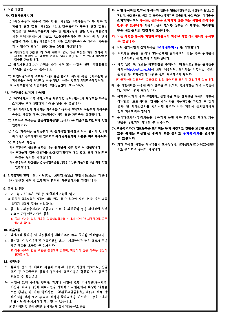 2018년 제 2차 해양경찰청 경찰공무원 (순경 - 공채분야) 채용시험에 대해서