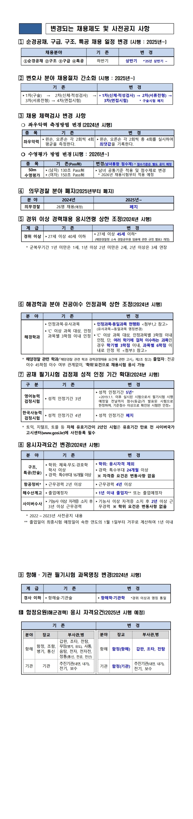 ※ 해양경찰공무원 변경되는 채용제도 및 사전공지 사항