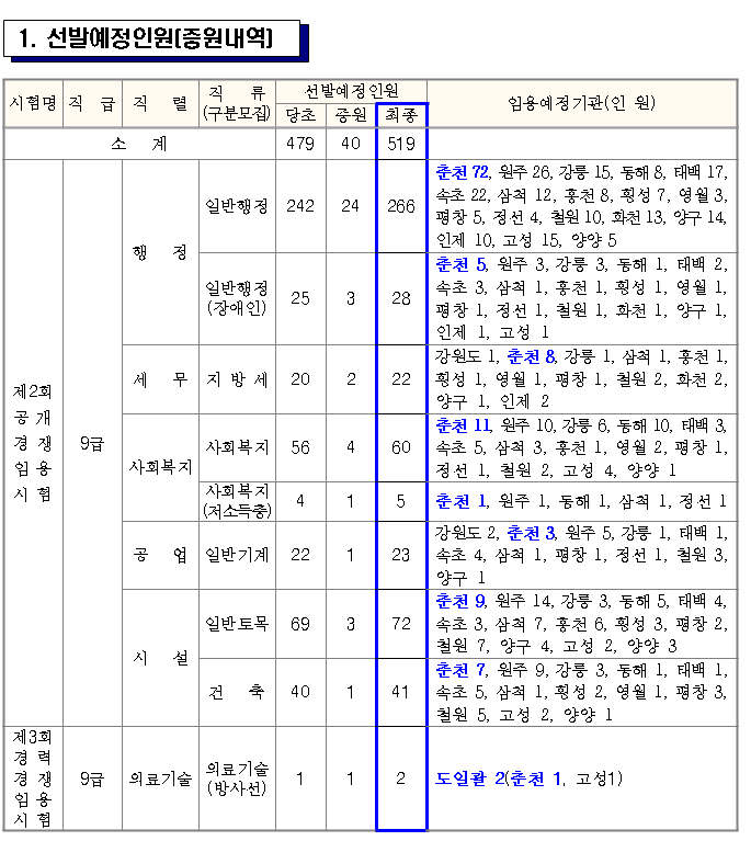 <<2018년 강원도 지방공무원 공개경쟁 임용시험 시행계획 공고>> (변경된 공고임)