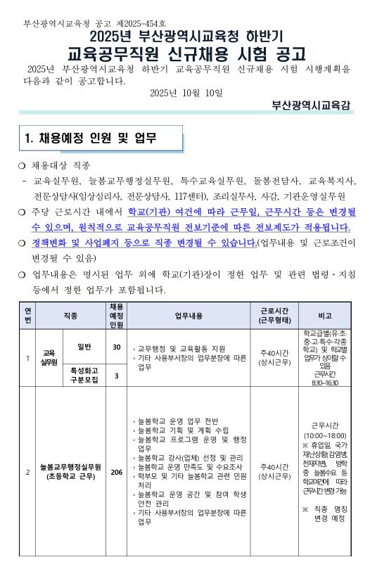 ▶2025년 부산광역시교육청 하반기 교육공무직원 신규채용 공고