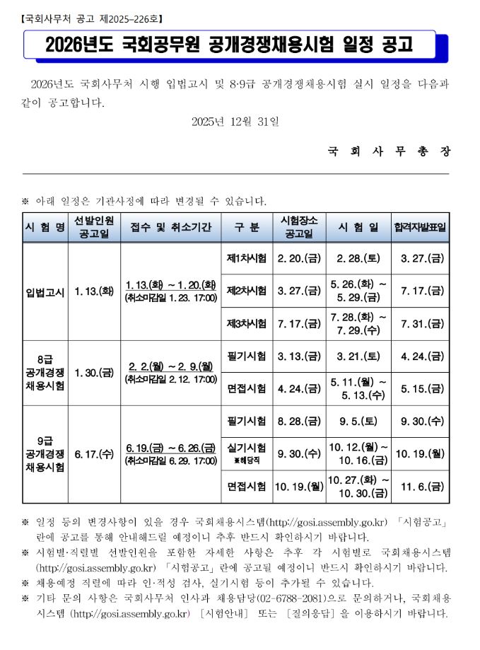 [2025-226] 2026년도 국회공무원 공개경쟁채용시험 일정 공고.pdf
