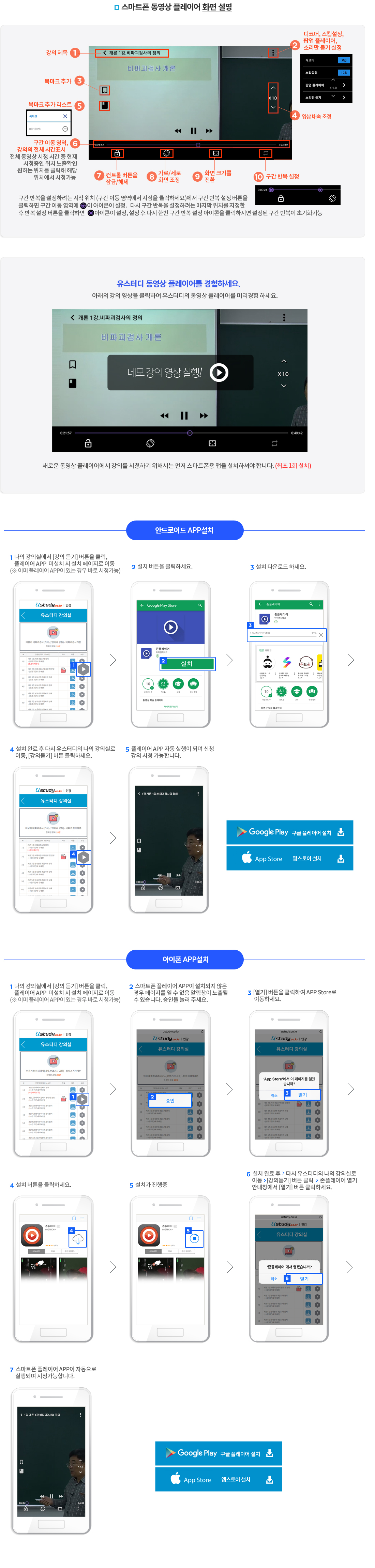 유스터디 동영상 플레이어 안내