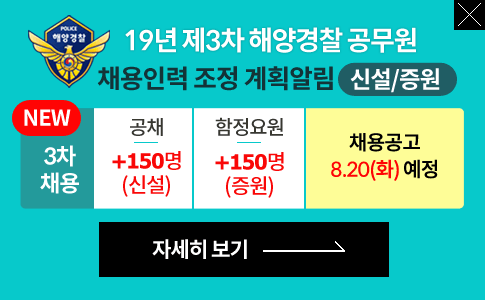 | ▶2025년 해양경찰청 소속 공무원 연간채용계획 등 공고 | 2025.01.22 |