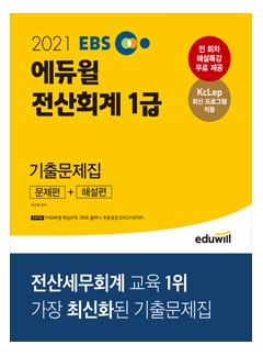 (2021 EBS 에듀윌 전산회계 1급 기출문제집)은 2021년 시험을 준비하는 수험생을 위해 문제와 해설, 백데이터를 2021년에 맞춰 수정하였습니다. 또한 현직 세무사의 전 회차 무료 해설특강과 각 문항과 연결되는 THEME별 핵심요약(특별부록)을 제공하여 학습에 어려움이 없도록 하였습니다.