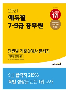 (2021 에듀윌 7·9급 공무원 단원별 기출&예상 문제집 행정법총론)은 반드시 풀어 보아야 할 ‘필수기출 문제’와 기출 기반의 ‘출제예상 문제’를 단원별로 나누어 구성하였습니다. 단원별 문제풀이를 통해 기출회독 점검과 문제풀이 훈련은 물론, 약점 영역까지 파악하여 학습의 빈틈을 완벽하게 메울 수 있습니다. 자신의 취약점을 모른 채 무작정 학습 커리큘럼만 따라가는 수험생들에게 합격으로 빨리 가는 길을 안내해 드립니다.