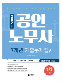2021 공인노무사 시험 대비를 위해 최신 시험 경향을 면밀히 분석한 ‘2021 공인노무사 1차 시험 7개년 기출문제집’ 도서가 출간되었습니다. 경영학개론을 포함하여 과목별 7개년 기출문제를 모두 수록하였으며, 모든 기출문제를 현행 법령에 맞도록 수정하여 수험생 여러분들에게 가장 빠르고 확실한 합격을 선사합니다.