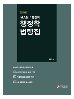 행정학에서 공무원 수험생이 필요로 하고, 합격을 위해 중요한 요소라면 항상 그것을 해결하기 위해 노력해야 한다는 것이 마니행정학의 기본 방향입니다. ‘2021 마니행정학 법령집’ 은 공무원 고득점 합격을 위한 총정리 학습에 큰 기회가 될 것입니다.