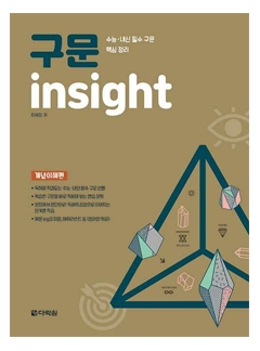 'insight 시리즈'는 수능을 준비하는 학생들을 위해 현장 교사와 강사의 체계적인 연구를 통해 개발된 수능 대비 교재입니다. 'insight 시리즈'는 수능 입문용 기본서인 '기본영어 insight', 본격적인 수능 문법 학습용인 '어법 insight' 시리즈와 수능 필수 구문 훈련용인 '구문 insight' 시리즈로 구성되어 있습니다. 'insight 시리즈'는 학습자가 수능 영어를 영역별과 단계별로 학습하여 수능 고득점을 달성할 수 있게 해 줄 것입니다.