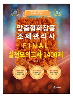 맞춤형 화장품 조제관리사 자격시험은 화장품법 제3조 4항에 따라 맞춤형 화장품의 혼합, 소분 업무에 종사하고자 하는 자를 양성하기 위해 실시하는 시험으로서 “맞춤형 화장품 조제관리사 FINAL 실전 모의고사 1400제”는 맞춤형 화장품 조제관리사 자격시험을 위해 필요한 지식, 스킬을 제공하는 데 목적이 있으며 식품의약품안전처 교수ㆍ학습가이드, 화장품법, 화장품법 시행령, 화장품법 시행규칙 및 관련 고시를 토대로 하였습니다. 본 교재의 특징은 아래와 같습니다.