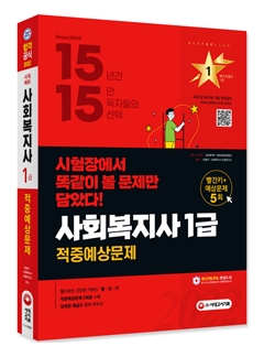 사회복지사 1급 자격시험은 성실한 자세로 꾸준히 학습하는 것도 중요하지만, 무엇보다 실전 연습이 중요합니다. 1년에 한 번만 응시할 수 있을 뿐만 아니라 하루에 8영역을 3교시에 걸쳐 치러야 하므로 컨디션 조절에 실패하거나 조금만 방심하면 자신의 실력을 제대로 발휘하지 못할 수도 있기 때문입니다. 사회복지사 1급 적중예상문제집에 수록된 5회분의 문제는 실제 시험과 비슷한 수준으로 문제를 생성하였으므로 시간을 정해두고 문제를 풀어나가는 연습을 하기에 적합합니다. 꼼꼼하게 표시한 기출연도도 반드시 확인하세요!