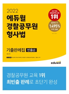 출제 비중 80%를 차지하는 방대한 양의 형사법 판례, 학습의 우선순위를 정하는 것이 중요합니다. 『2022 에듀윌 경찰공무원 형사법 기출판례집(빈출순)』은 형사법 판례를 빈출순으로 배열하여 단기에 효율적인 학습이 가능합니다. 또한 판례별 대표 기출OX 문제를 판례 아래에 바로 배치하여 판례가 어떻게 문제화되는지 확인해 볼 수 있고, 기출판례뿐 아니라 출제예상 최신판례까지 수록하여 앞으로 출제 가능성이 높은 판례에도 대비할 수 있습니다. 『2022 에듀윌 경찰공무원 형사법 기출판례집(빈출순)』은 판례 학습에 가장 유용한 교재가 될 것입니다.