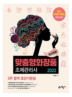 현 화장품학 전공 교수가 노하우와 지식을 총동원하여 집필한 ‘2022 맞춤형화장품 조제관리사 2주 합격 초단기완성’ 도서가 출간되었습니다. 본 도서는 식약처에서 공개한 최신 가이드를 철저하게 분석하고 반영함은 물론, 2주 안에 빠르게 합격하기 위해 과목별 ‘핵심이론’과 ‘식약처 예시문항’, ‘기출변형문제’로 구성하였습니다. 또한 제1회~4회 기출문제를 완벽 복원하였을 뿐만 아니라 저자가 직접 엄선한 실전모의고사 등 다량의 문제를 수록하여 누구보다 빠른 합격이 가능합니다.