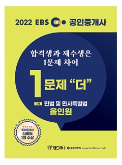 그런데 합격과 불합격은 한 문제 또는 몇 문제를 더 맞느냐? 그렇지 않느냐의 차이로 결정 되어 지는데 이번에 공인중개사 전문교육기관인 EBS공인중개사 랜드하나의 1문제 더 올인원 교재는 공인중개사 재수생과 어느 정도 공부를 진행한 수험생에게 꼭 필요한 교재이다.