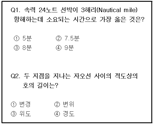 << 9월 12일 항해술 일일모의고사 - 출제자 : 김성곤 강사님 >>