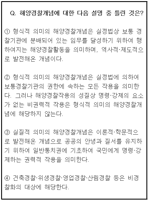 형식적 의미의 해양경찰개념은 해양경찰작용의 성질에 관계없이