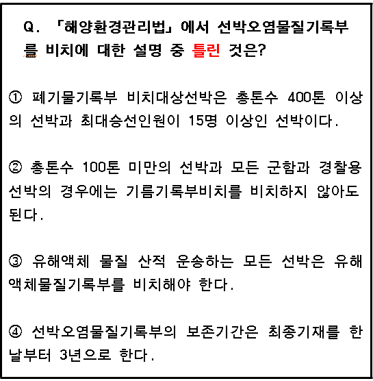 ► 총톤수 100톤 미만의 선박, 경하배수톤수 200톤 미만의 군함과 경찰용 선박,