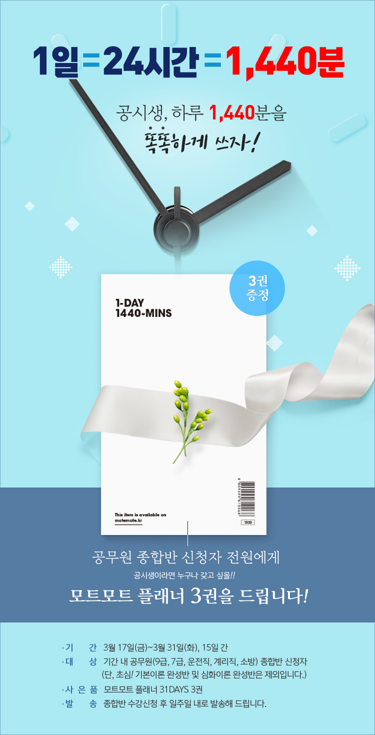 [이벤트]공시생, 하루 1,440분을 똑똑하게 쓰자! 모트모트 플래너 3권 드립니다.