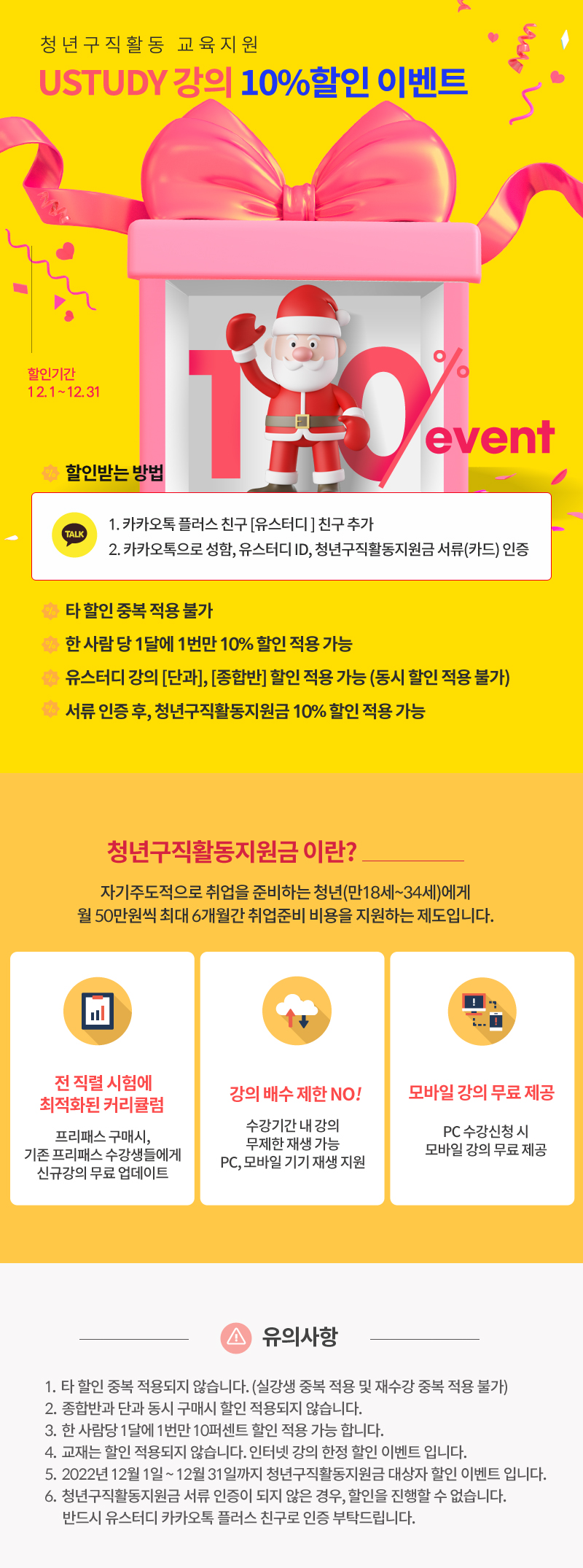 청년구직활동 교육지원이벤트! 유스터디강의 10퍼센트할인