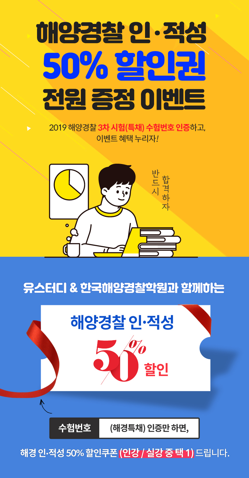 [이벤트 - 종료] 해경 인적성 50%할인권 전원증정 이벤트! (3차 시험특채 수험번호 인증)