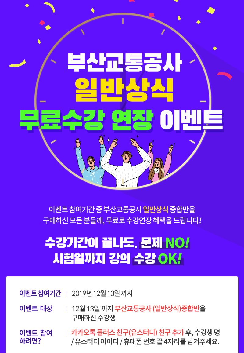[이벤트 - 종료] 부산교통공사 일반상식 무료수강연장 이벤트