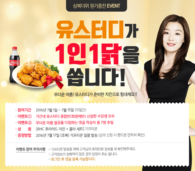 [원기충전 이벤트] 유스터디가 1인1닭을 쏩니다!!!(7/1~7/15)조회수 : 4,390