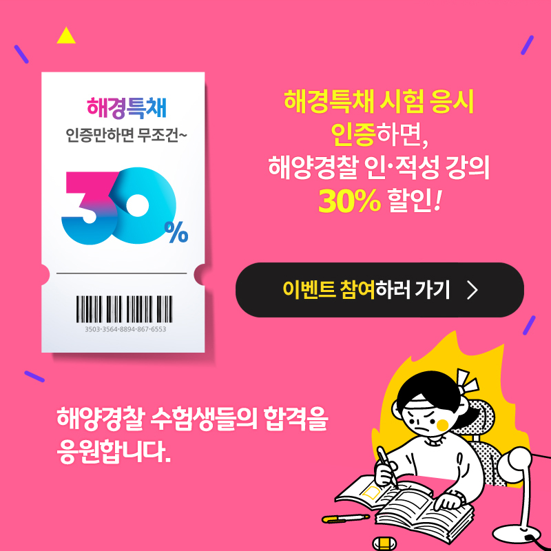해양경찰 인.적성 30%할인이벤트(2020 해경시험 특채 수험번호 인증 필)