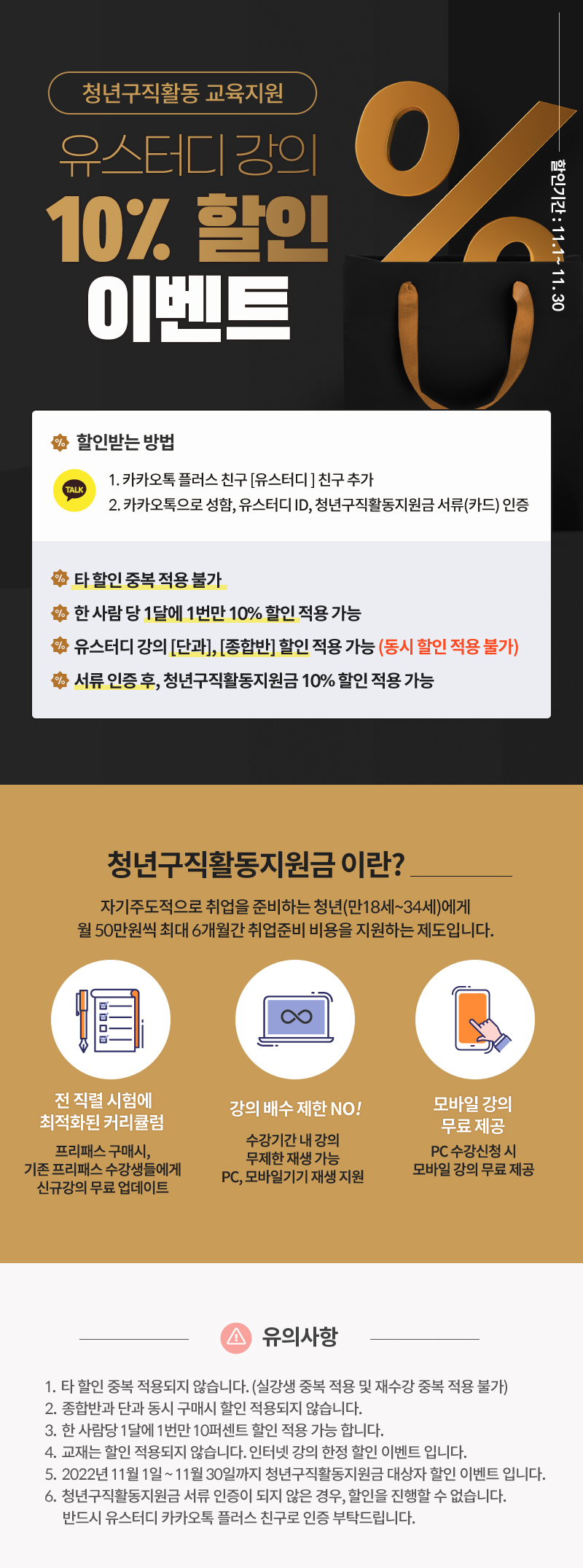 청년구직활동 교육지원이벤트! 유스터디강의 10퍼센트할인