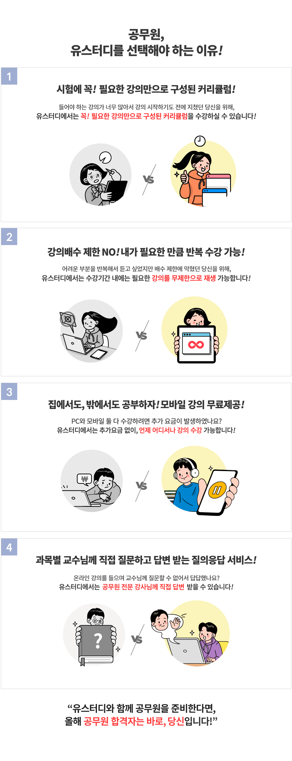 • ⑥ 환불 조건에 부합하는 강좌를 다른 강좌로 직접 변경은 불가하며, 환불과 동일한 조건으로 환불 처리 후 재 결제하거나 유스터디 고객센터로 문의하셔야 합니다.