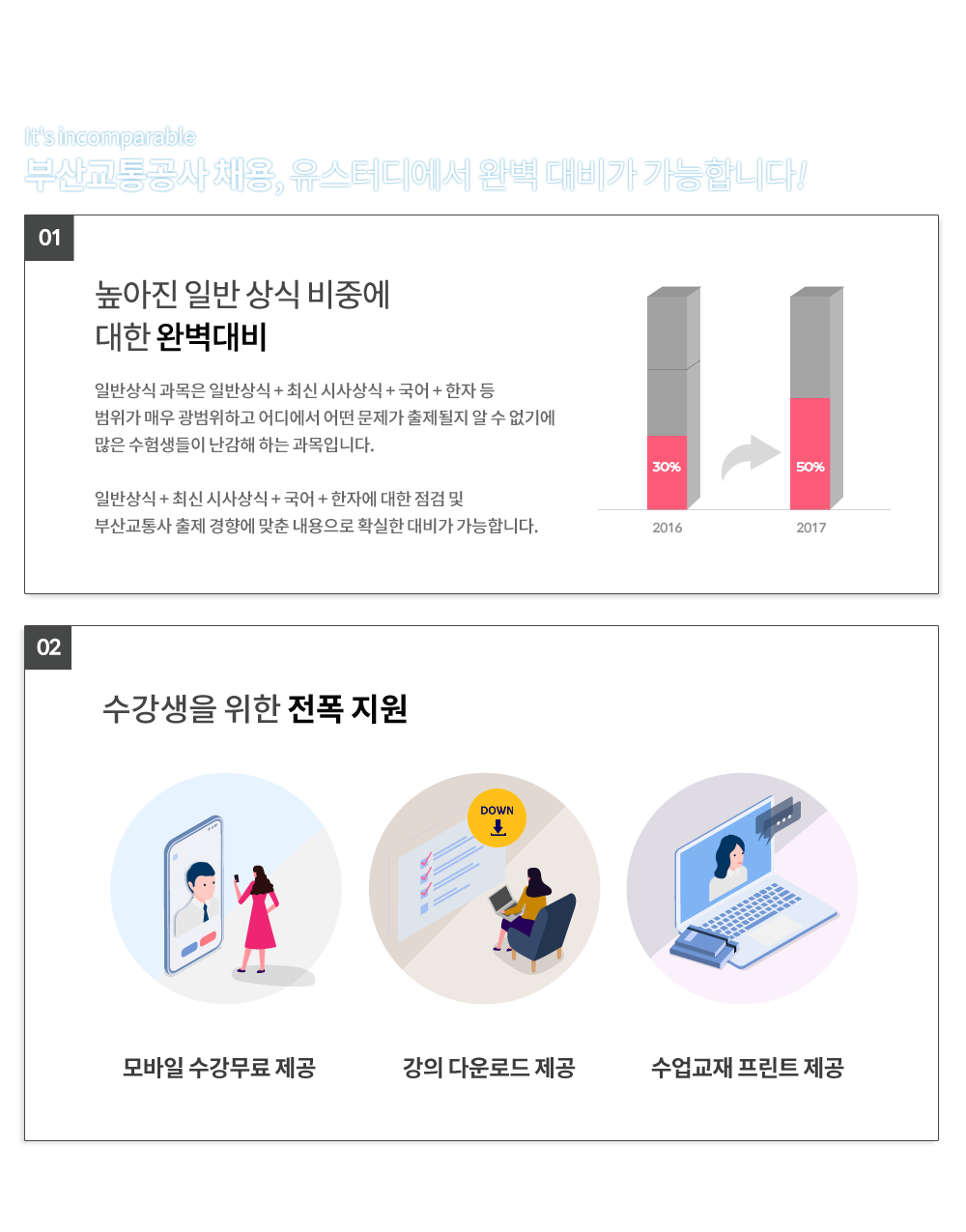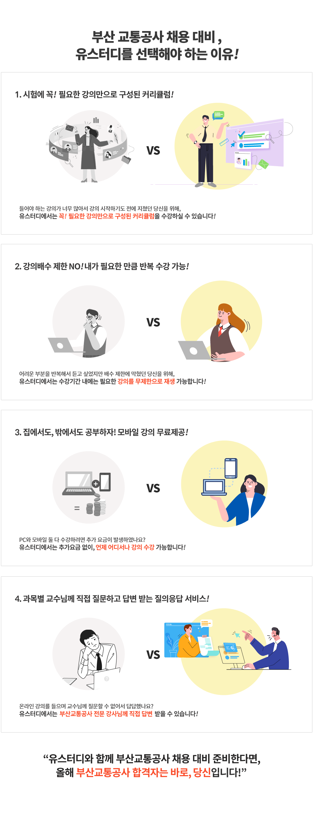 • ⑥ 환불 조건에 부합하는 강좌를 다른 강좌로 직접 변경은 불가하며, 환불과 동일한 조건으로 환불 처리 후 재 결제하거나 유스터디 고객센터로 문의하셔야 합니다.