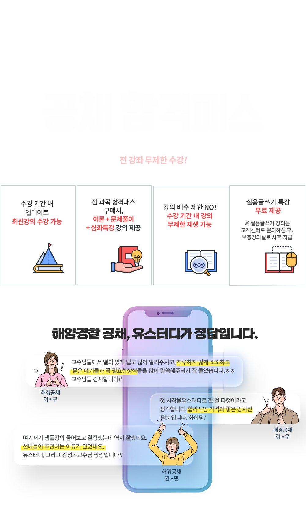 • ⑥ 환불 조건에 부합하는 강좌를 다른 강좌로 직접 변경은 불가하며, 환불과 동일한 조건으로 환불 처리 후 재 결제하거나 유스터디 고객센터로 문의하셔야 합니다.