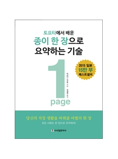 『종이 한 장으로 요약하는 기술(1Page)』은 펜과 종이를 사용하는 ‘아날로그’적 방법으로 ‘디지털’ 사회를 앞서가는 비법에 대해 친절하게 설명하고 있다. 일 잘하는 사람의 공통적인 특성을 추출하여 누구라도 실천할 수 있는 1회 3분 1장 쓰기만 하면 업무 스킬이 비약적으로 올라갈 수 있게 도와준다. 종이 한 장과 3색펜만 있으면 누구라도 자신의 복잡한 머릿속 생각을 한 장으로 효과적으로 요약할 수 있는 법을 익힐 수 있을 것이다. 넘쳐나는 데이터 홍수 속에서 사는 현대인에게 요약의 기술이 있느냐 없느냐는 곧 성공과 실패의 잣대가 될 수 있다.