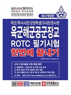 육군, 해군, 공군 장교를 꿈꾸는 수험자들을 위한, 모두를 아우르는 통합 문제집이다. 필기평가에 필요한 언어능력, 자료해석, 공간능력, 지각속도와 국사를 수록하였고, 실전 모의고사 5회분과 기출 적중 문제 1회분을 수록하여 필기시험 문제를 보다 쉽게 대비할 수 있게 하였고, 정답 및 해설과 중요 어휘 및 면접 비법을 특별부록에 따로 담았다.