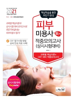 3. 끝으로, 상시시험으로 운영되고 있는 미용사(피부) 필기시험 출제문제를 반영한 총 12회분의 CBT 대비 적중모의고사를 상세한 해설과 함께 수록하여 효과적인 시험대비가 가능하도록 하였습니다.