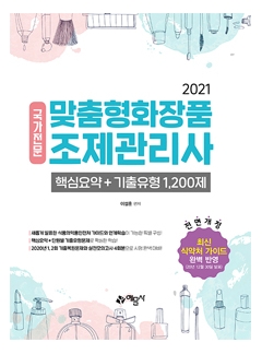 현 화장품학 전공 교수가 노하우와 지식을 총동원하여 집필한 ‘2021 맞춤형화장품 조제관리사 핵심요약+기출유형 1,200제’ 도서가 출간되었습니다. 본 도서는 식약처에서 공개한 최신 가이드를 철저하게 분석하고 반영함은 물론, 빠르게 합격하기 위해 과목별 ‘핵심이론’과 ‘기출변형문제’를 함께 구성하였습니다. 또한 2020년 제1·2회 기출문제를 완벽 복원하였을 뿐만 아니라 저자가 직접 엄선한 실전모의고사 등 다량의 문제를 수록하여 누구보다 빠른 합격이 가능합니다.