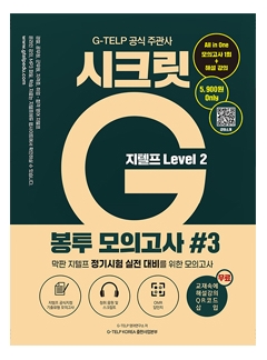 시크릿 G 봉투모의고사 #3는 교재 속에 해설강의 QR코드를 삽입해서 교재와 동영상 해설강의를 All in One으로 만들었습니다. 지텔프 정기시험 응시 전, 지텔프 막판 재정비를 시크릿G 봉투 모의고사 #3와 함께 하세요.