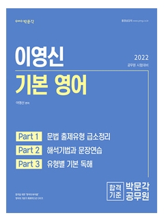 『2022 이영신 기본 영어』는 공무원 영어 시험 대비를 위한 기본 학습서로, 3개의 파트로 구성되어 있다. 『2022 이영신 기본 영어』의 파트별 특징은 다음과 같다.