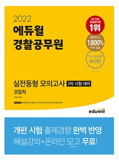 (2022 에듀윌 경찰공무원 실전동형 모의고사 2차 시험 대비 경찰학)은 내ㆍ외부 경찰 전문 검수진의 3단계 문항 정제화를 통해 실전에 가장 적합한 문항 퀄리티를 구현하였습니다. 경찰 최신 기출문제를 바탕으로 출제원칙을 낱낱이 분석하였으며, 2022년 1차 시험을 바탕으로 2차 시험의 출제 예측에 맞게 유형과 문항을 배치하였고, 개정법령 및 최신판례까지 모두 반영하였습니다.