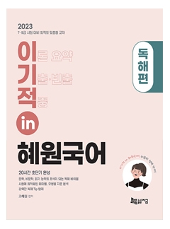 (2023 이기적in 혜원국어 독해편)은 공무원 합격을 위해 반드시 필요한 과정이라고 확신한다. (2023 이기적in 혜원국어 독해편)을 손에 쥔 수험생에게 합격의 기쁨이 함께하길, 힘껏 응원한다.