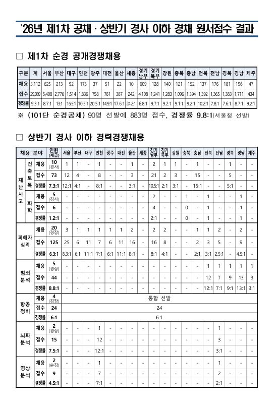 ▶2026년 제1차 경찰 공개채용 및 상반기 경사이하 경력채용 원서접수 결과