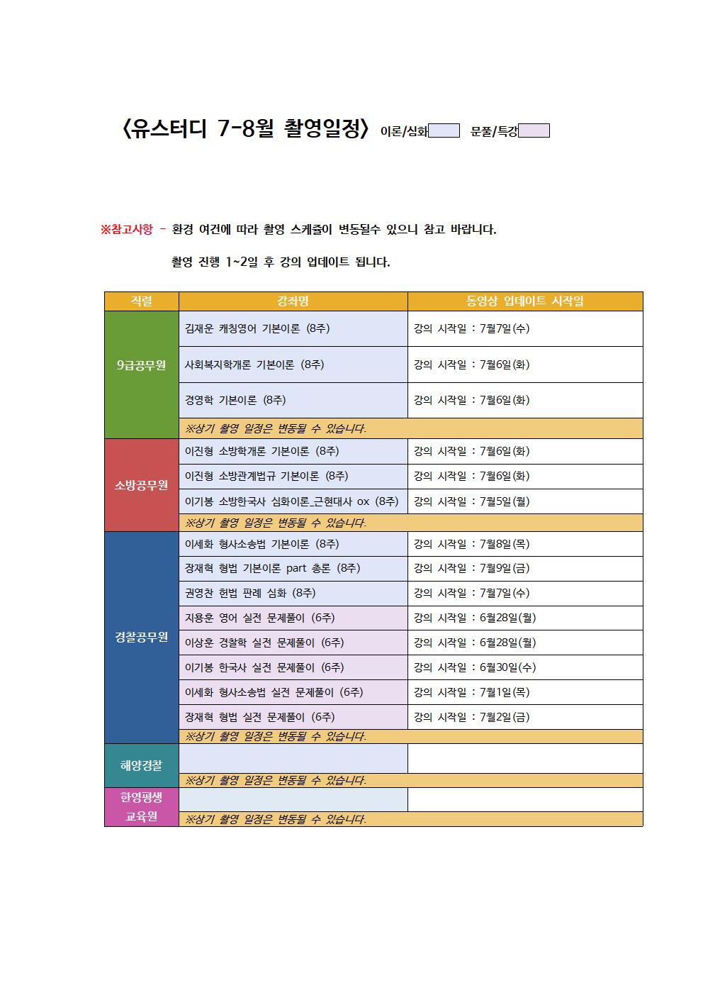 *유스터디 2021년 7-8월 신규 촬영, 업그레이드 예정 과목입니다. (7월 2일 수정)
