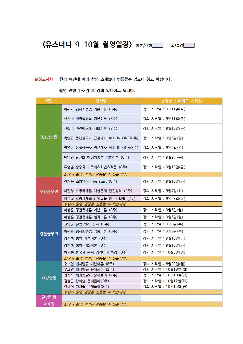 *유스터디 2021년 9-10월 신규 촬영, 업그레이드 예정 과목입니다. (10월 4일 수정)