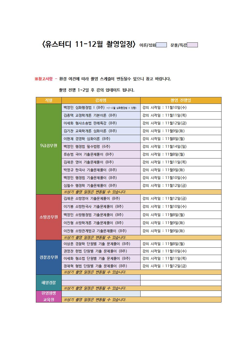*유스터디 2021년 11-12월 신규 촬영, 업그레이드 예정 과목입니다.