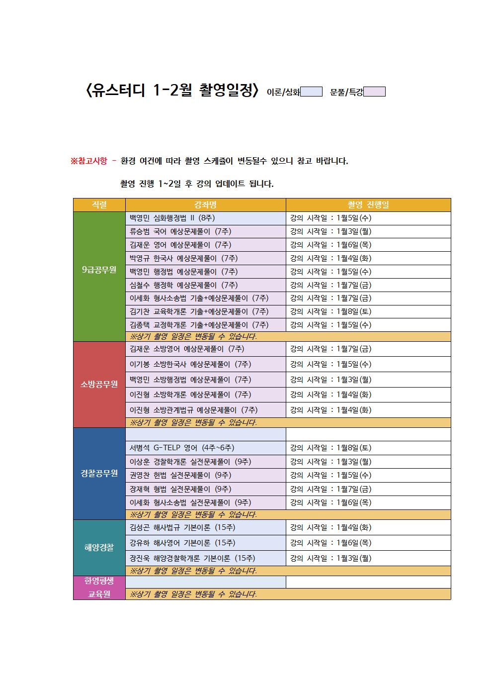 *유스터디 2022년 1-2월 신규 촬영, 업그레이드 예정 과목입니다.