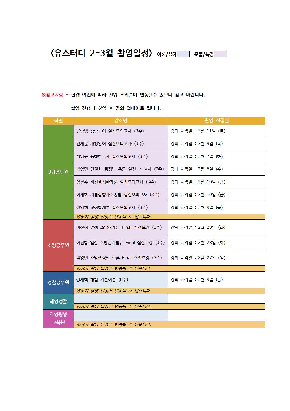 *유스터디 2023년 2-3월 신규 추가 촬영, 업그레이드 예정 과목입니다.