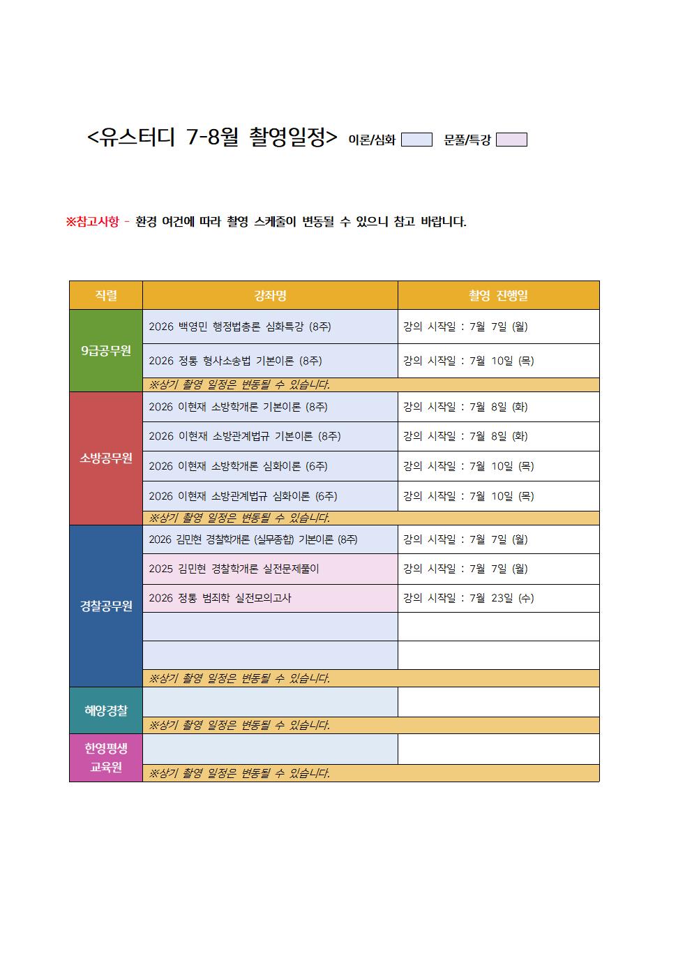*유스터디 2025년 7-8월 신규 추가 촬영, 업그레이드 예정 과목입니다.